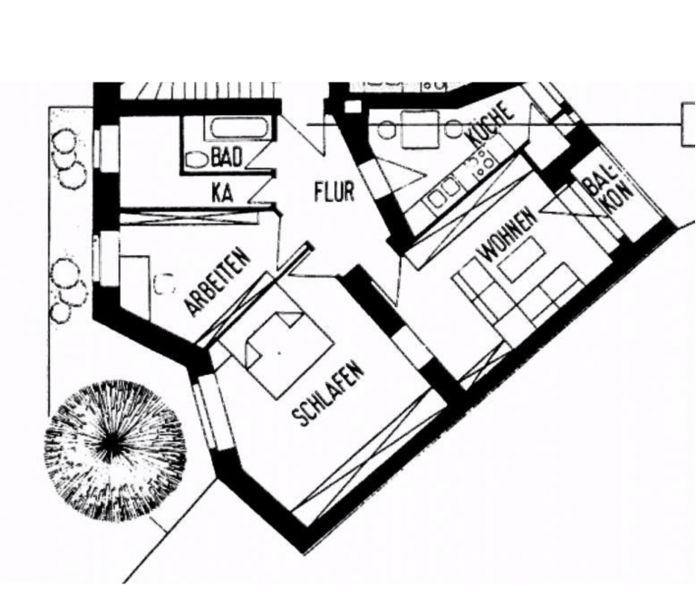 Die ruhige Wohnung befindet sich im Erdgeschoss des Gartenhauses und verfügt über eine Wohnfläche von ca. 77m². Diese verteilt sich auf drei Zimmer, eine Küche nebst Speisekammer und ein tagesbelichtetes Badezimmer, ausgestattet mit einer Badewanne und separater Dusche. Zudem verfügt die Wohnung über einen Balkon mit Austritt zu einem Gemeinschaftsgarten.