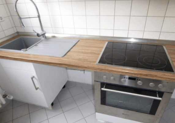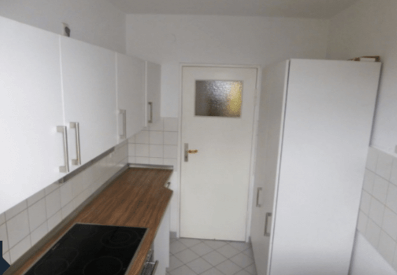 Die drei hellen Zimmer sind mit Dielenboden ausgestattet, das Badezimmer und die Küche sind komplett gefliest. Die vorhandene Einbauküche ist im Kaufpreis enthalten.