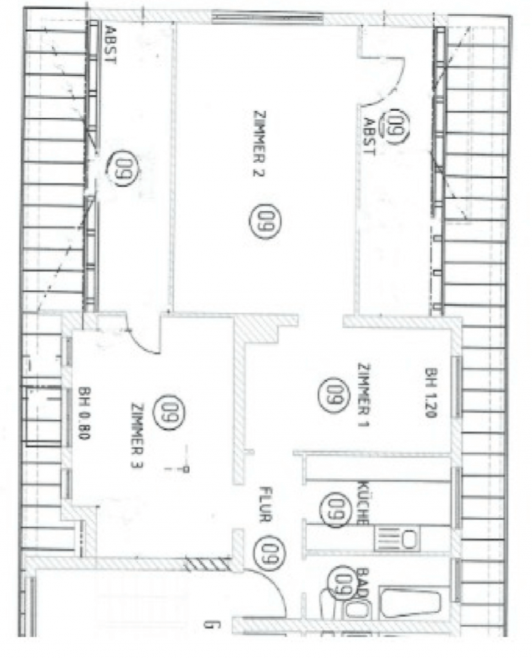 Die Wohnung liegt im Dachgeschoss (2.OG) eines Wohnkomplexes mit drei Häusern und insgesamt 28 Wohnungen.
