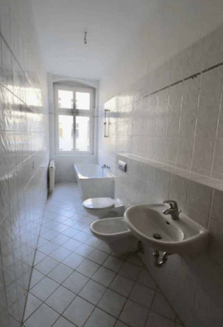 Gleich neben dem Schlafzimmer befindet sich das Bad mit einer Badewanne und einem Fenster, vor dem Badezimmer gibt es einen kleinen Vorraum, der als Garderobe genutzt werden kann.