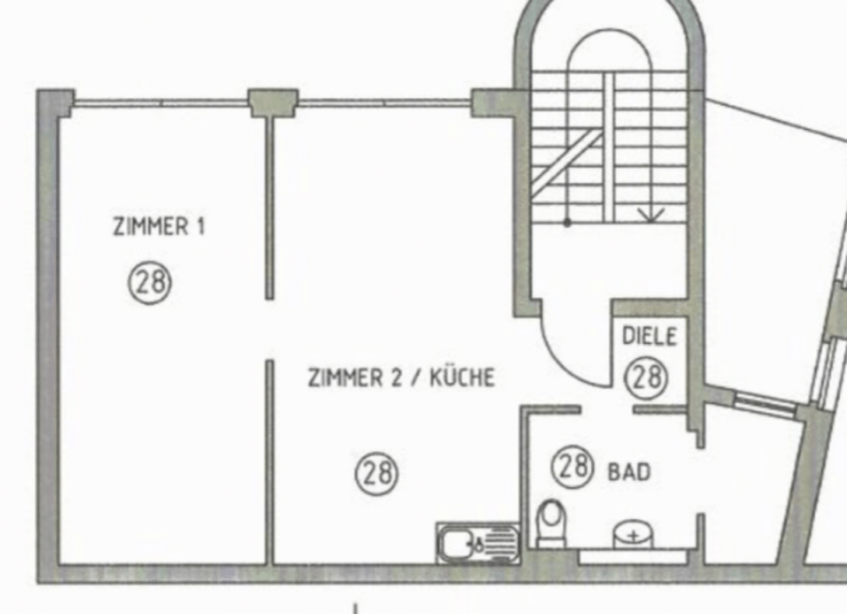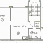 Im Eingangsbereich befindet sich anfangs das Badezimmer. Weiterhin erreicht man vom Eingangsbereich aus das erste Zimmer mit offener Wohnküche. Über eine Durchgangstür ist das zweite Zimmer zu erreichen, das sich ideal als Schlafbereich eignet.