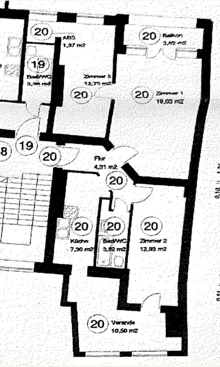 Das viergeschossige Wohn- und Geschäftshaus wurde um die Jahrhundertwende erbaut. Die Wohnung befindet sich im 1. Obergeschoss und ist über das Treppenhaus zu erreichen.