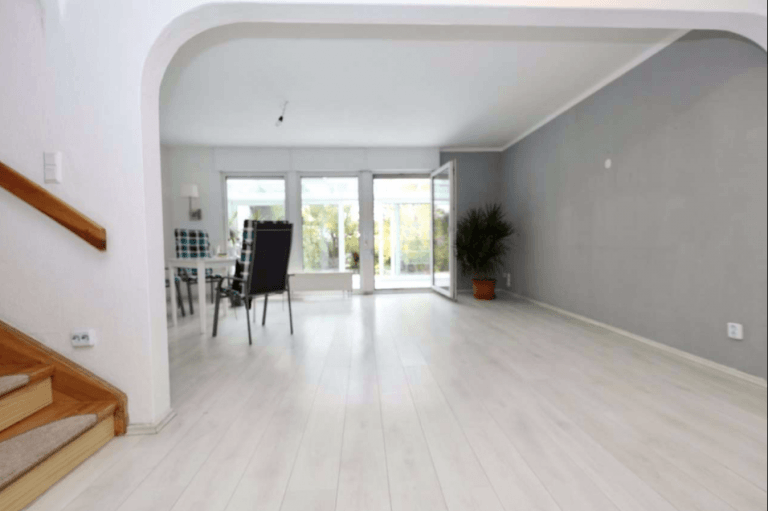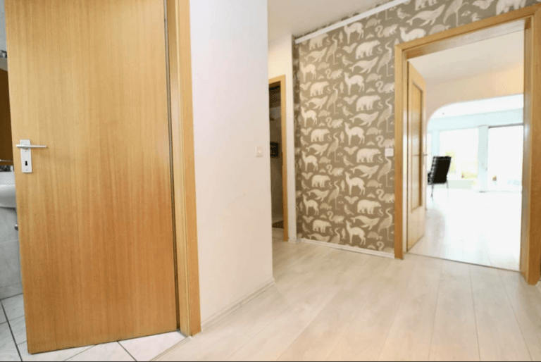 Eine Deckenhöhe von ca. 2,50 m verleiht ein angenehmes Raumgefühl. Die Wände sind tapeziert. Im Eingangsbereich und in den Wohnräumen ist ein sehr hochwertiges, modernes und pflegeleichtes Laminat verlegt. Die Bäder und die Küche sind modern gefliest. Die ebenfalls hochwertigen Kunststofffenster sind doppelt verglast.