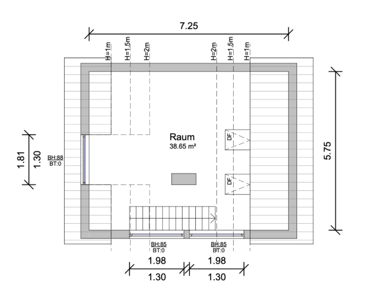 Zusätzlich bietet die Dachgeschossebene ca. 38,65 m² Nutzfläche.