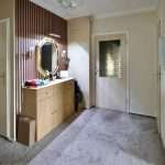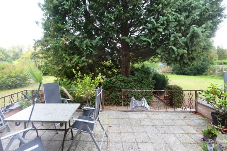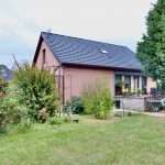 Das Haus ist über einen Windfang begehbar, welcher zu einem geräumigen Eingangsbereich führt und Zugang zu allen Räumen des Erdgeschosses bietet. Hier befinden sich eine Küche mit einer Einbauküche, ein tagesbelichtetes Badezimmer mit Badewanne sowie einer separaten Dusche und ein sehr geräumiges Wohnzimmer mit großflächiger Fensterfront und Zugang zur Terrasse. Diese verfügt über ausreichend Platz zum Entspannen oder für gesellige Zeiten mit einem weitläufigen Blick in den großen Gartenbereich. Das Wohnzimmer bestand ursprünglich aus zwei Räumen, was bei Bedarf wieder unterteilt werden könnte.