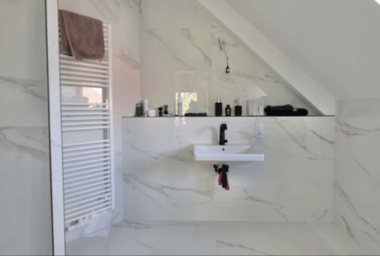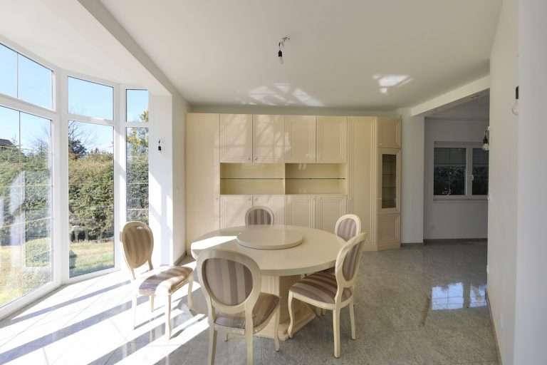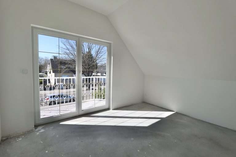 Das Erdgeschoss ist mit hochwertigen Natursteinfliesen (Kashmir White) ausgestattet, und im Obergeschoss kann von einem neuen Eigentümer ein neuer Bodenbelag nach eigenen Wünschen und Vorstellungen verlegt werden. Die Wände sind verspachtelt. Weiterhin ist das Haus mit zweifach verglasten Kunststofffenstern ausgestattet, die über elektrische Jalousien verfügen.