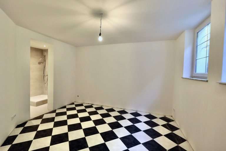 Das Souterrain bietet neben einem Hauswirtschaftsraum zudem hochwertig ausgebaute Flächen mit einem Küchenbereich, einem Badezimmer und besticht durch eine Raumhöhe von 2,60m.