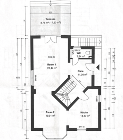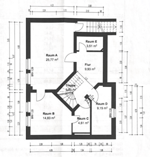Die Raumhöhe im Erdgeschoss beträgt ca. 2,80m und im Obergeschoss ca. 2,70m.