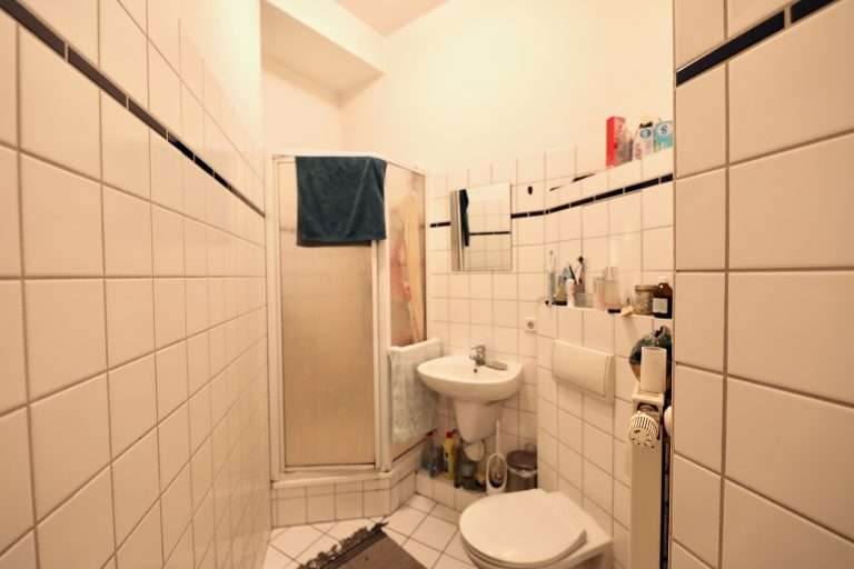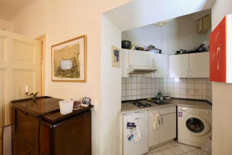 Die Wohnung befindet sich im Hochparterre des Vorderhauses und verfügt über eine Wohnfläche von ca. 40,47 m². Diese verteilt sich auf einen Flur, ein Wohn-/Schlafzimmer, eine halb-offene Küche inklusive Pantry-Küche mit Waschmaschinenanschluss sowie auf ein Duschbad.