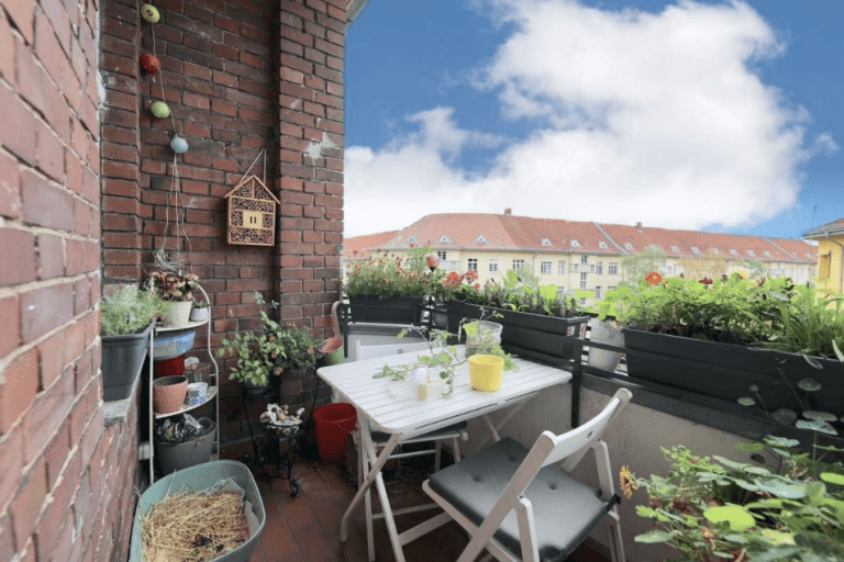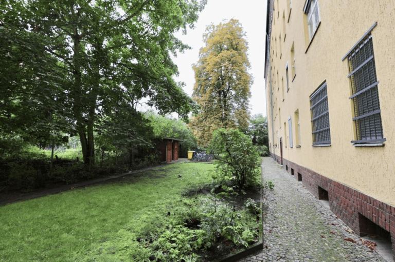 Im gepflegten Gemeinschaftsgarten stehen Fahrradständer zur Verfügung.