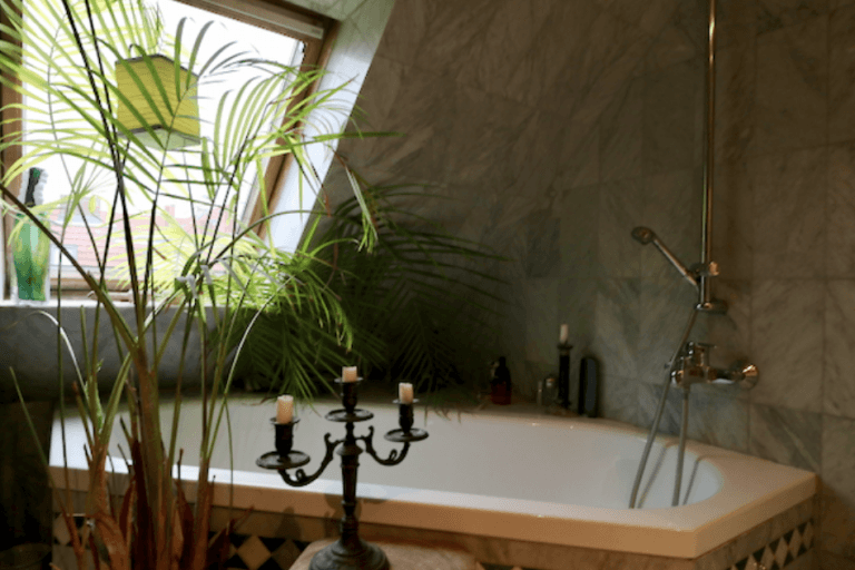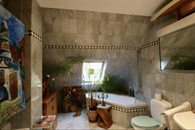 Das Badezimmer hat einen großzügigen Schnitt, ist mit einer Badewannen ausgestattet sowie einer Fußbodenheizung und schönem Marmorboden. Die Größe des Badezimmers würde bei einer Neuplanung oder Umplanung zudem noch eine separate Dusche zulassen.