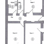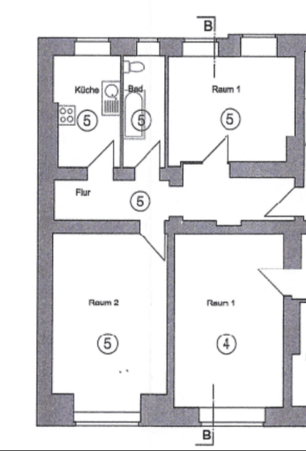 Das Wohnhaus ist in ein Vorderhaus und in ein Hinterhaus aufgeteilt. Die Wohnung befindet sich im 1. OG des Vorderhauses und verfügt über ca. 61,82 m², die sich auf zwei Zimmer, eine Küche und das Bad verteilen.