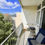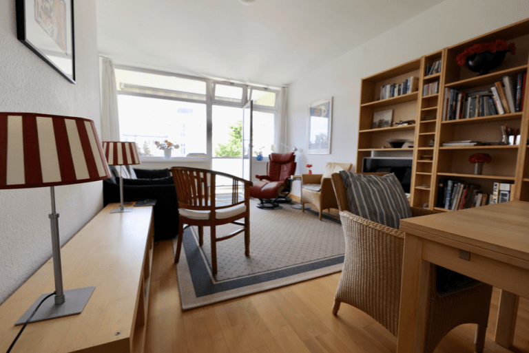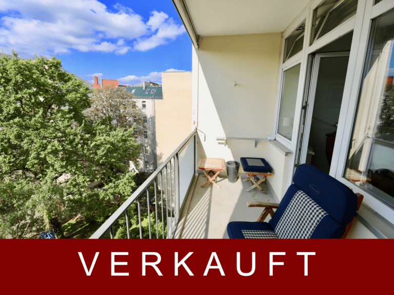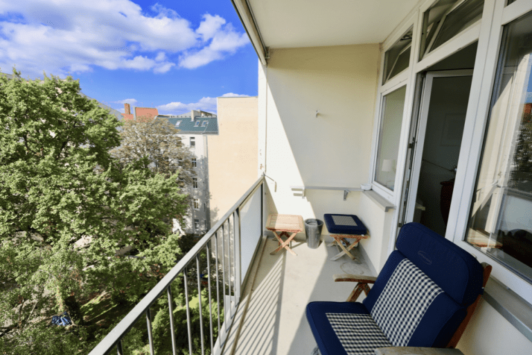 Von dem Wohnzimmer aus ist der Westbalkon zu begehen, der einen schönen Blick in den Innenhof bietet.