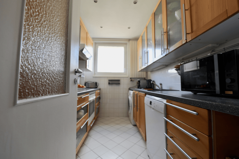 Die Wohnung ist bequem über einen Fahrstuhl zu erreichen und verfügt über eine Wohnfläche von ca. 55 m², welche sich auf einen Flur mit einer Abstellkammer, zwei Zimmer, eine Küche inklusive Einbauküche und ein tagesbelichtetes Duschbad, ausgestattet mit einem Handtuchwärmer, verteilt.