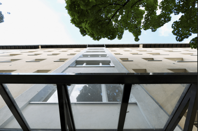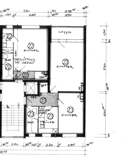 Die Dachgeschosswohnung befindet sich im fünften Obergeschoss eines 1955 errichteten Mehrfamilienhauses mit insgesamt 24 Wohneinheiten.