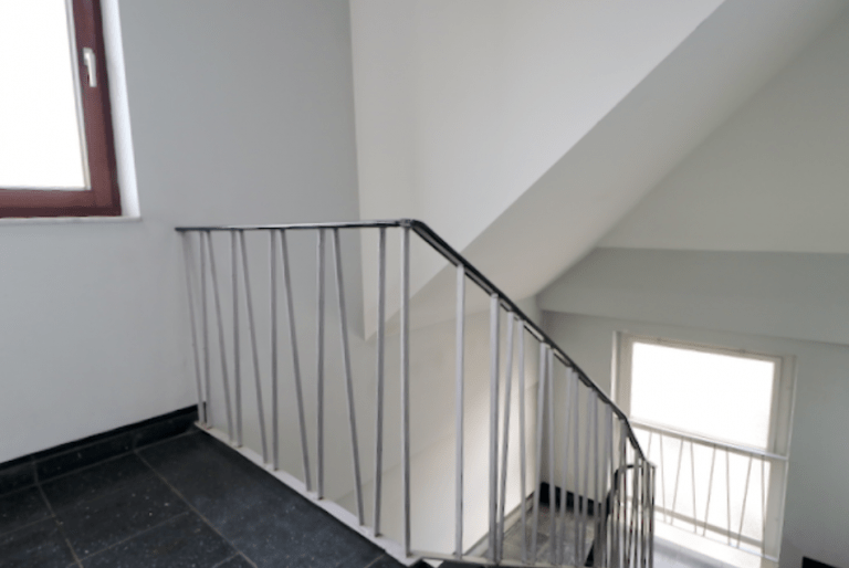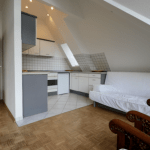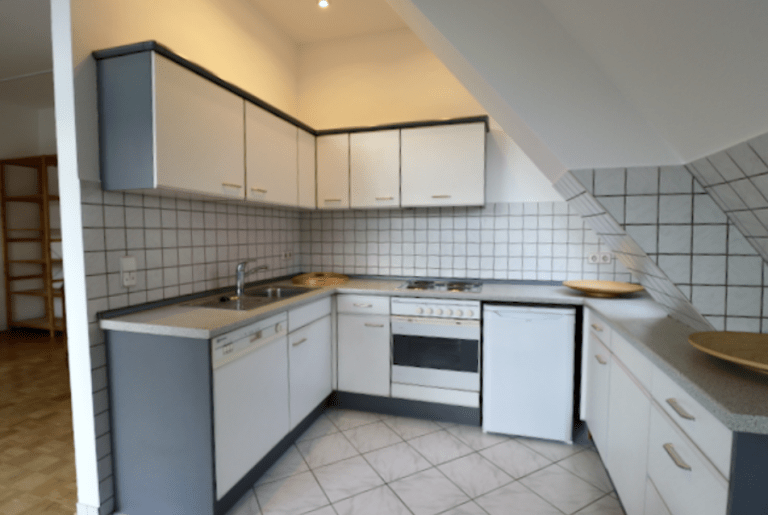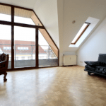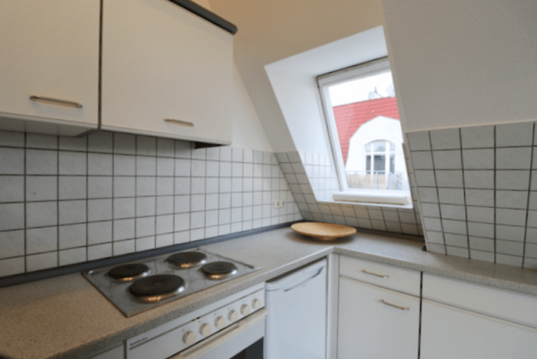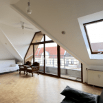 Das 5-geschossige Wohnhaus wurde 1960 erbaut. Die Wohnung befindet sich im 1992 ausgebauten Dachgeschoss und ist bequem mit dem Fahrstuhl sowie ein Treppengeschoss zu erreichen.