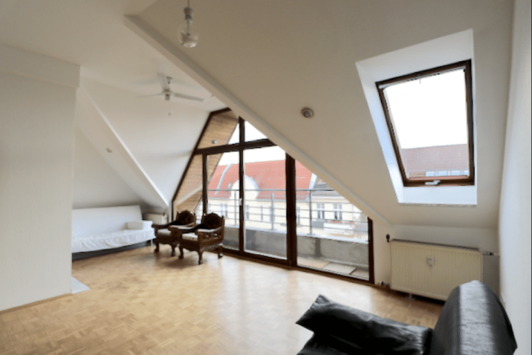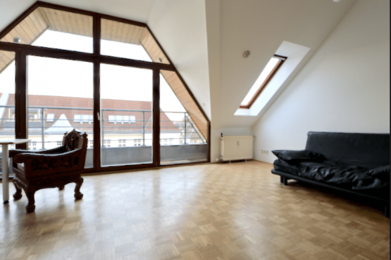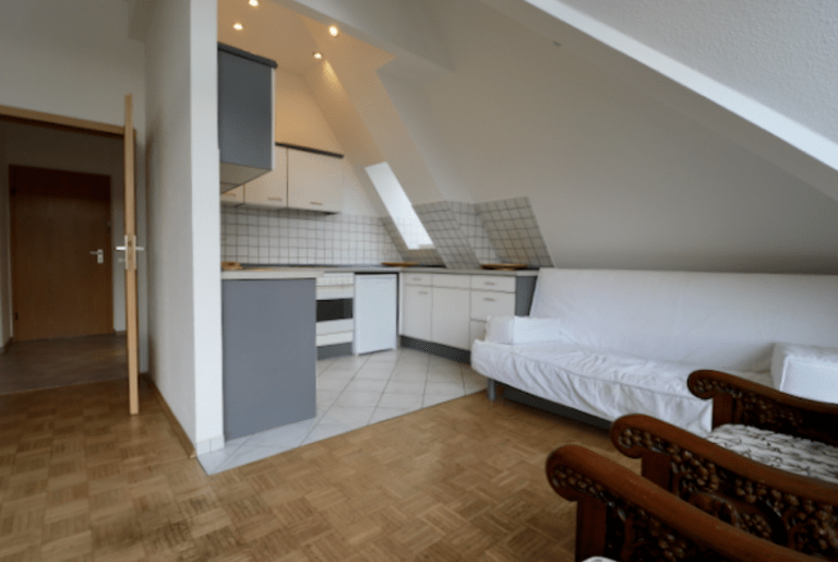 Im Flurbereich befindet sich eine Öffnung zum Spitzbogen, der z.B. als Lagerfläche genutzt werden kann.