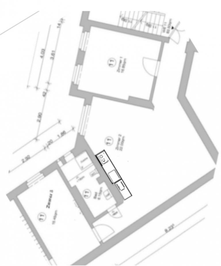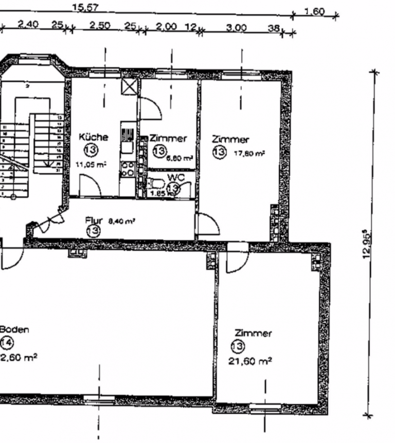 Die Wohnung befindet sich im Dachgeschoss des Vorderhauses, verfügt über ca. 66 m² Wohnfläche und ist renovierungsbedürftig.