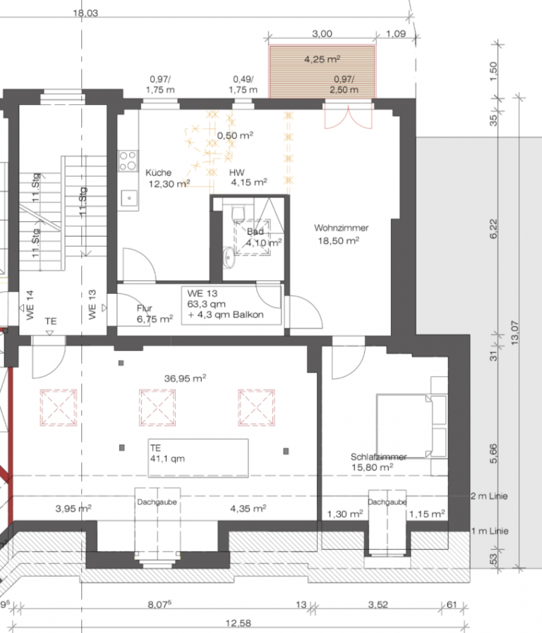 Die Wohnung wird zusammen mit der danebenliegenden Dachfläche als Erweiterungsoption verkauft, so dass eine großzügige Gesamtfläche von ca. 106 m² erzielt werden kann.