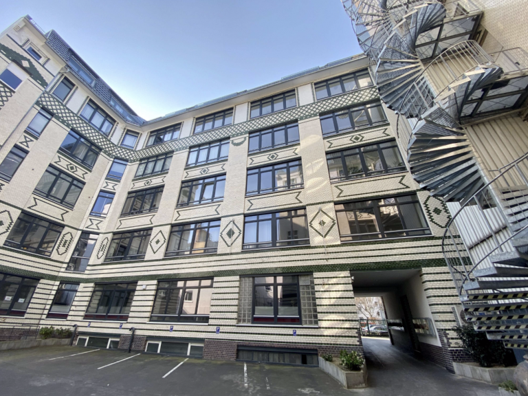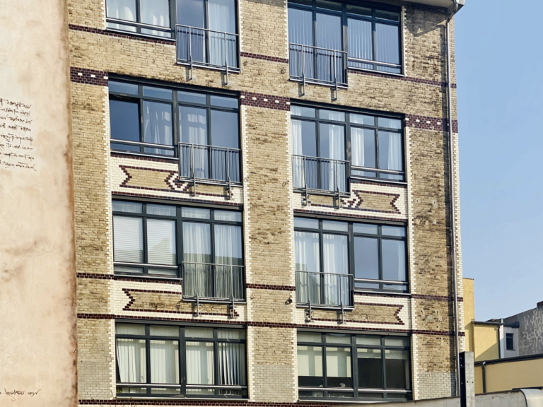Das 5-geschossige Fabrikgebäude verbindet historischen Charme mit moderner Architektur. Hinter der mit glasierten Ziegeln gestalteten Fassade verbergen sich moderne Loft-Wohnungen sowie ein neu ausgebautes und außergewöhnlich gestaltetes Dachgeschoss.