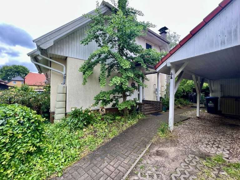 Der Doppelhaushälfte ist ein Carport zugeordnet. Das Tor zur Auffahrt auf das Grundstück wird per Fernbedienung geöffnet bzw. geschlossen.