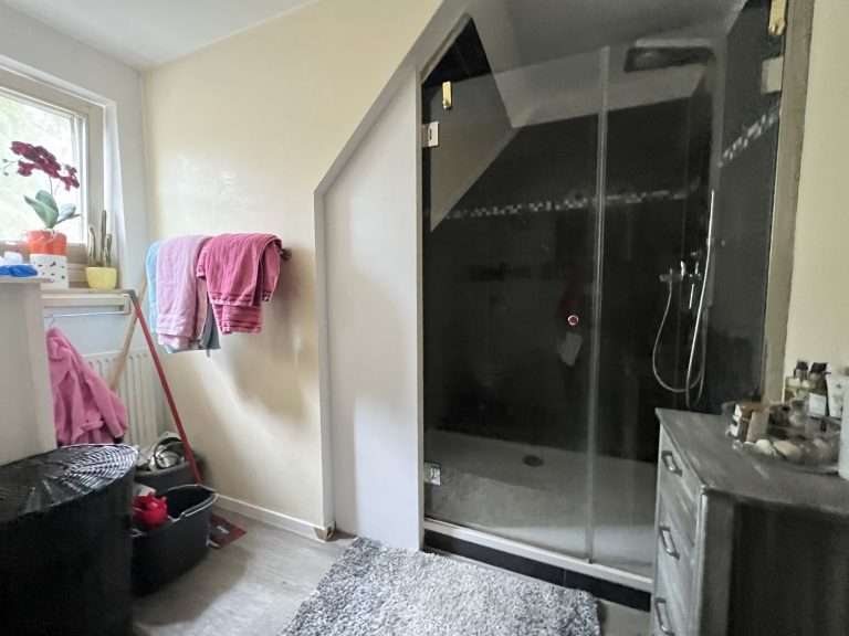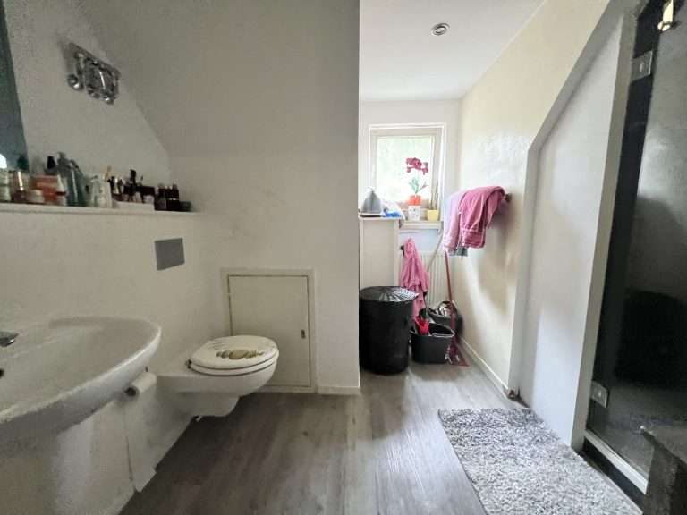 Im Obergeschoss gehen vom Flur drei weitere Zimmer und ein Badezimmer mit einer großzügigen, ebenerdiger Dusche ab.
