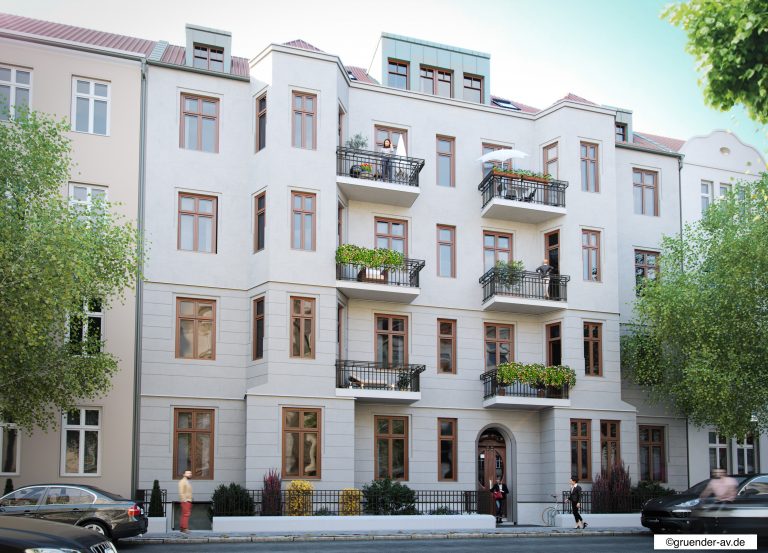 - Instandsetzung und Neugestaltung der Straßen- und Hoffassaden sowie des Treppenhauses