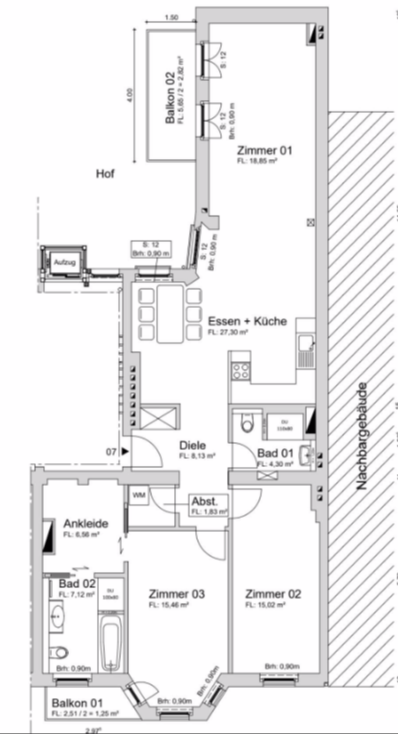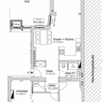 Es besteht die Möglichkeit, aus der Planung der 3-Zimmer-Wohnung eine 4-Zimmer-Wohnung zu erhalten, indem das geplante Duschbad/Gäste-WC als Hauptbadezimmer umgewandelt wird, und das geplante Hauptbadezimmer als drittes Zimmer genutzt werden kann, wobei optional in dem geplanten Ankleidezimmer ggfs. noch ein Duschbad errichtet werden kann.