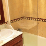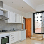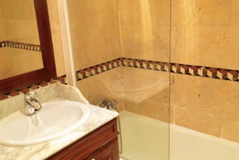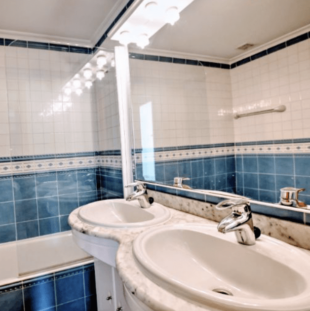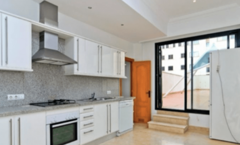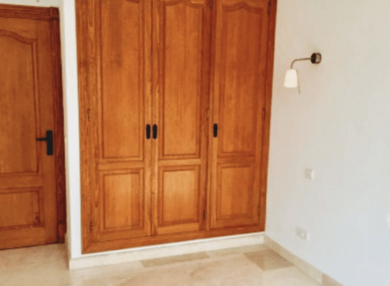 Zur Wohnungsausstattung gehören eine Einbauküche inklusive Elektrogeräten, eine Klimaanlage, Einbauschränke in den Schlafzimmern, ein hochwertiger Marmorboden in allen Räumen und Panoramafenster im Wohnzimmer.