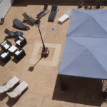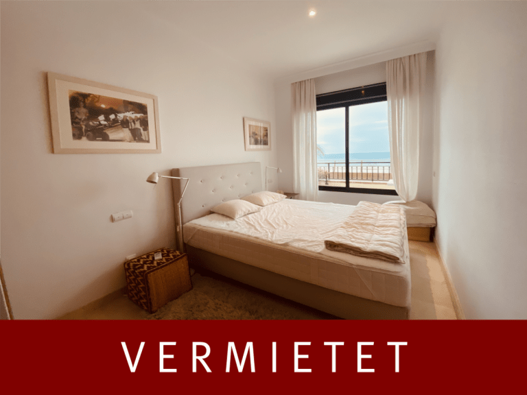 Highlight der Wohnung sind zwei großzügige Terrassen, die zum Verweilen einladen. Dabei bietet eine Terrasse, die von dem Wohnzimmer aus zugänglich ist, einen direkten Blick aufs Meer. Von hier können ein wunderschöner Sonnenaufgang genossen oder die letzten Stunden beobachtet werden, bevor die Sonne in das Meer eintaucht.