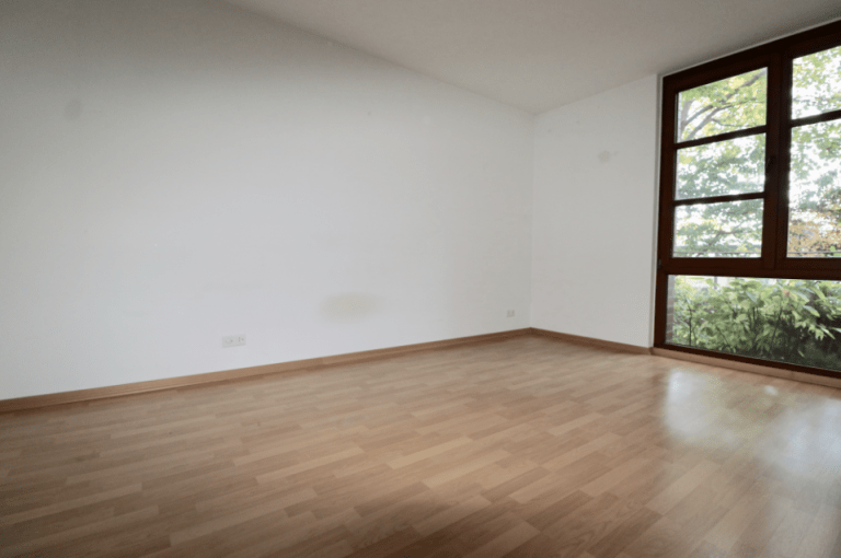 Die Wohnung ist mit Laminat ausgestattet und die Wände sind verspachtelt. Die Raumhöhe beträgt ca. 2,50m, und die meist bodentiefen Fenster vermitteln ein großzügiges Raumgefühl.