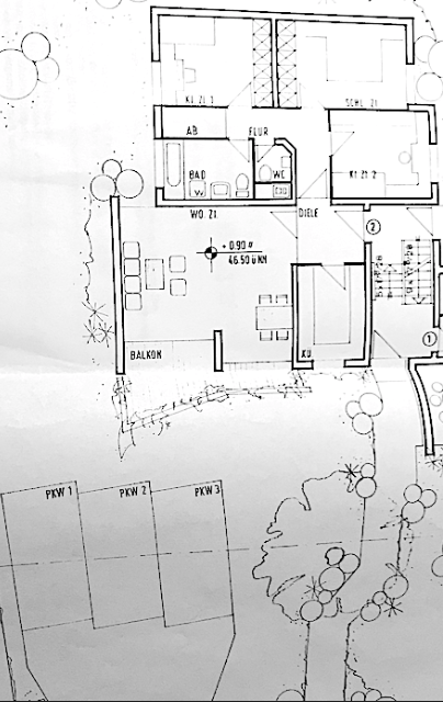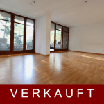 Neben der Küche befindet sich das große Wohnzimmer mit großflächigen bodentiefen Fenstern mit Doppelverglasung. Vom Wohnzimmer aus ist der westlich ausgerichtete Balkon zugänglich, welcher einen Blick ins Grüne und auch die Möglichkeit bietet, durch eine Öffnung der Terrasse einen direkten Zugang zu den drei Außen-Stellplätzen, die zur Wohnung gehören, zu schaffen.