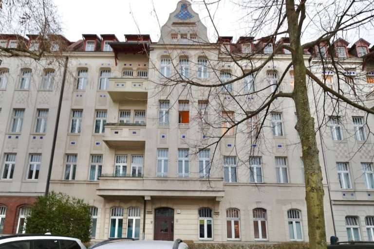 Das denkmalgeschützte Mehrfamilienhaus wurde 1910 errichtet und 1996 aufwendig kernsaniert. Die gut geschnittene Wohnung befindet sich im ersten Obergeschoss und ist über das charakteristische Treppenhaus zu erreichen.
