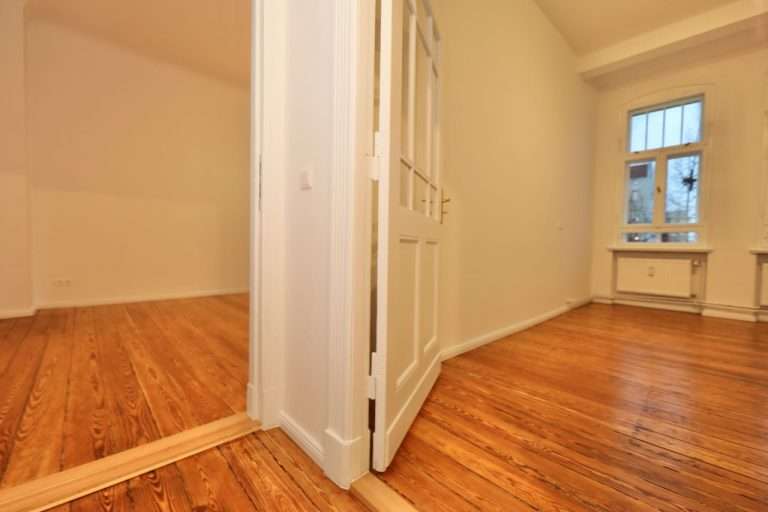 In den Wohnräumen und in der Küche sind schöne Dielen verlegt, die Doppelkastenfenster sind aus Holz, und die Wände gespachtelt. Eine Raumhöhe von ca. 3,30 m unterstreicht zudem den begehrten Altbau-Charakter.