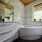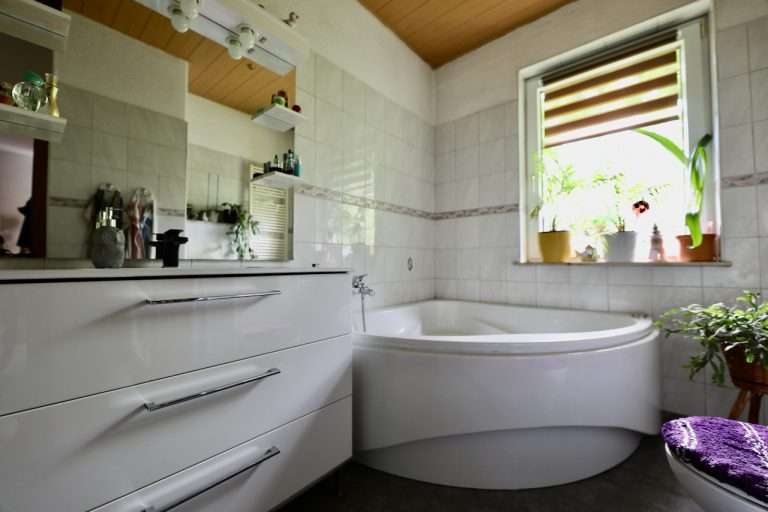 Im Erdgeschoss des Hauses befinden sich der Eingangsbereich; ein geräumiges Badezimmer, ausgestattet mit einer Eckbadewanne; ein Schlafzimmer sowie ein Wohnzimmer nebst einer offenen Küche, ausgestattet mit einer Einbauküche.