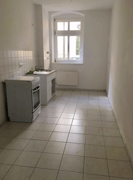 Sie verfügt über drei von der Diele zugängige Zimmer und eine separate Küche. Das Bad ist mit einer Badewanne ausgestattet.