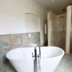 Das Master-Schlafzimmer mit begehbarer Garderobe und einem offen gestalteten Badezimmer inklusive freistehender Badewanne und separater Dusche vollendet die Großzügigkeit der Wohnung.