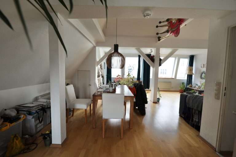 Die Dachgeschoss-Wohnung ist über das Treppenhaus zu erreichen und überzeugt durch ihren loftartigen Wohnbereich mit Galerie-Ebene.