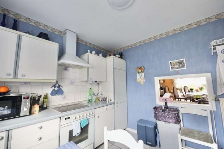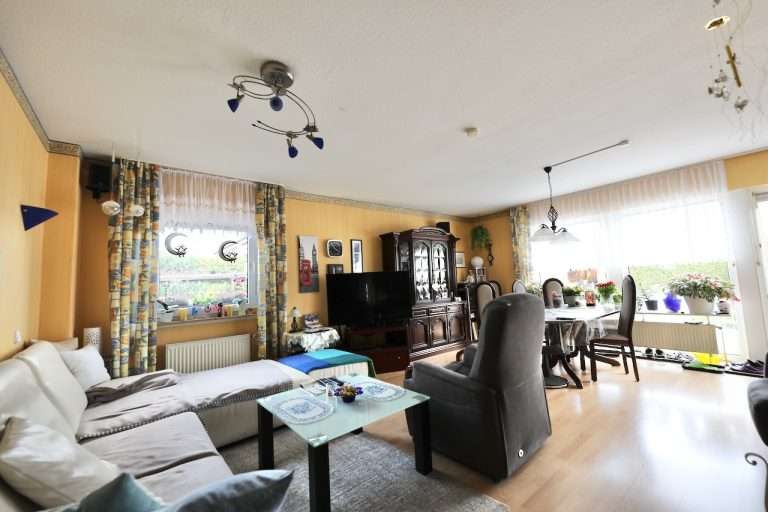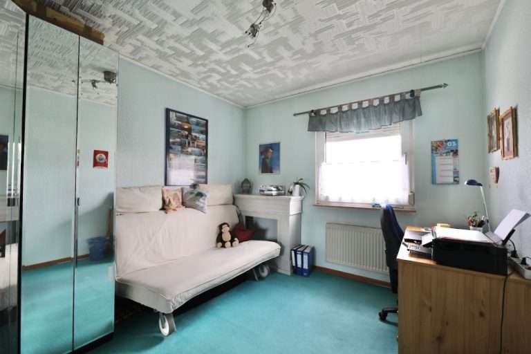 Eine Deckenhöhe von ca. 2,50m verleiht ein angenehmes Raumgefühl. Die Wände sind tapeziert, und die Wohnräume sind mit einem pflegeleichten Laminatboden versehen. In einem Schlafzimmer wurde Auslegware verlegt. Die Kunststofffenster sind doppelt verglast und mit manuellen Rollläden versehen.