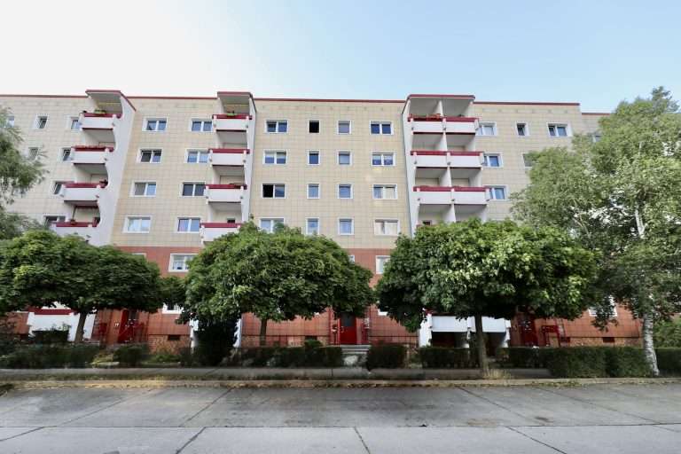 Die Wohnanlage wurde 1988 erbaut, präsentiert sich in einem gepflegten Zustand, und das Grundstück verfügt über großzügige Grünanlagen. Die Wohnung befindet sich im vierten Obergeschoss und ist über das Treppenhaus zu erreichen.