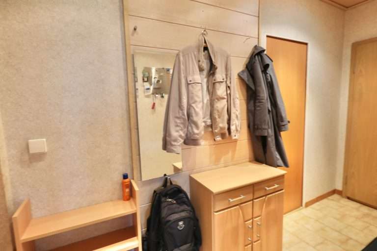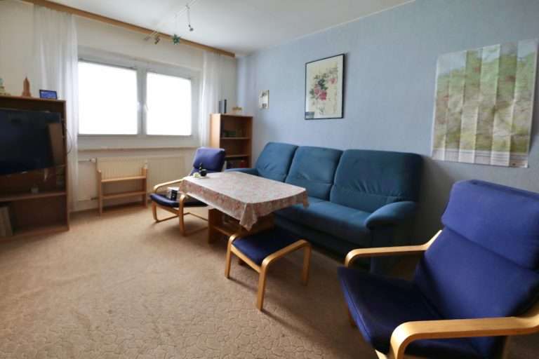 Der Flur ist gefliest, und die Wohnräume sind teils mit Laminatboden, teils mit Auslegware versehen. Die Kunststofffenster sind zweifach verglast, und die Wände sind tapeziert. Eine Raumhöhe von ca. 2,65 m verleiht der Wohnung ein behagliches Wohngefühl.