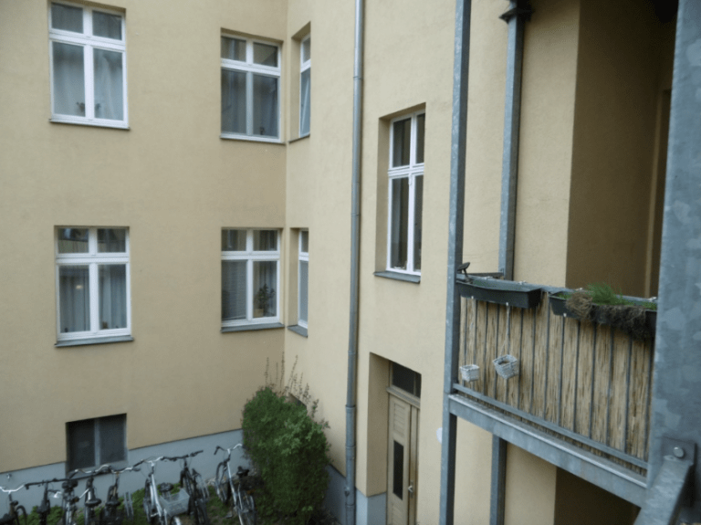 Die etwa 59 m2 Wohnung befindet sich im 1.OG im Hinterhaus eines sehr gepflegten Altbaus aus dem Jahre 1905.