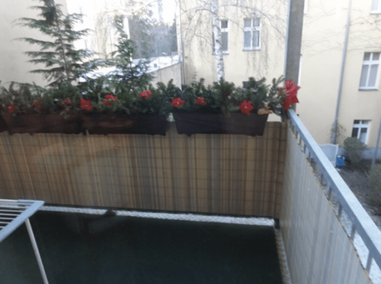 Der Balkon mit Blick in den begrünten Innenhof lädt außerdem zum Entspannen ein. Dieser hat eine Nord-Ausrichtung.
