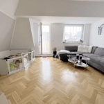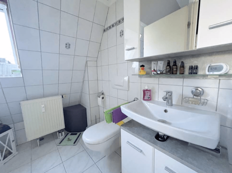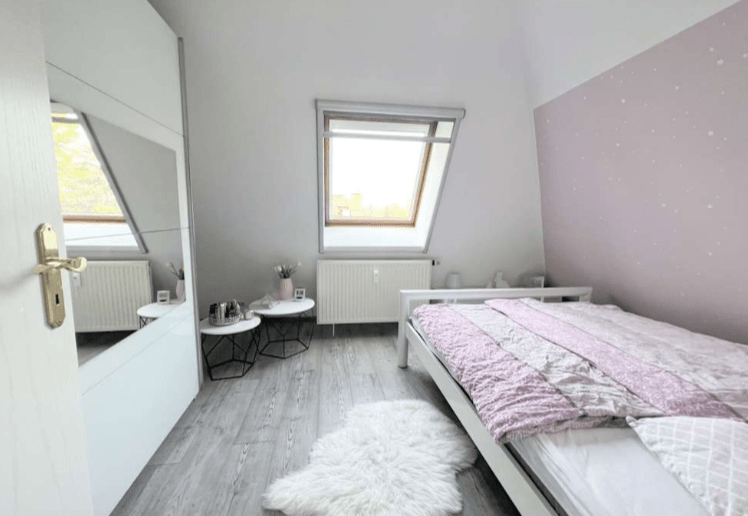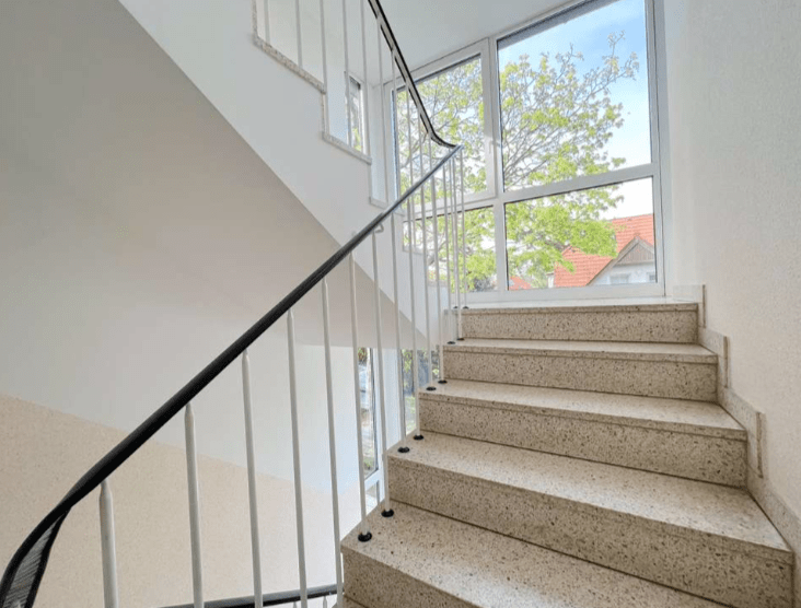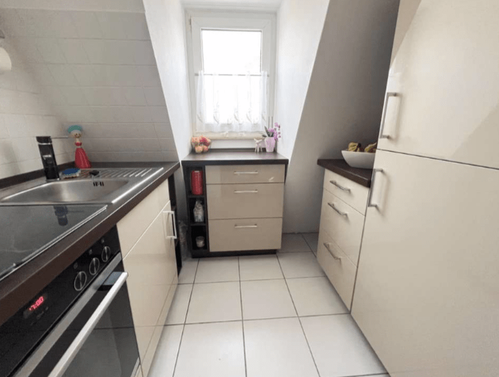 Die helle und ruhige 2-Zimmer-Wohnung befindet sich im zweiten Obergeschoss, also im Dachgeschoss des Gebäudes, und ist über das Treppenhaus bequem zu erreichen.