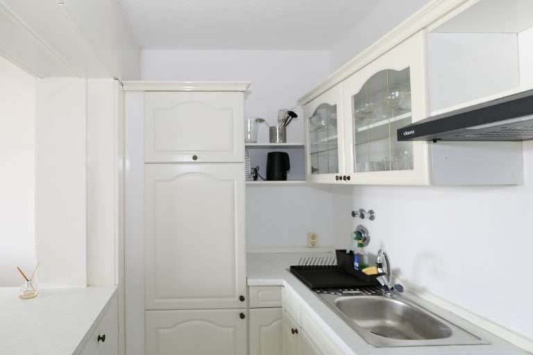 Die zweifach verglasten Kunststofffenster erstrecken sich über die gesamte Breite des Wohn-/Schlafzimmerbereiches, welcher eine westliche Ausrichtung hat. Die Wände sind tapeziert und im Wohnbereich ist pflegeleichtes Laminat verlegt. Die Deckenhöhe beträgt ca. 2,60 m.