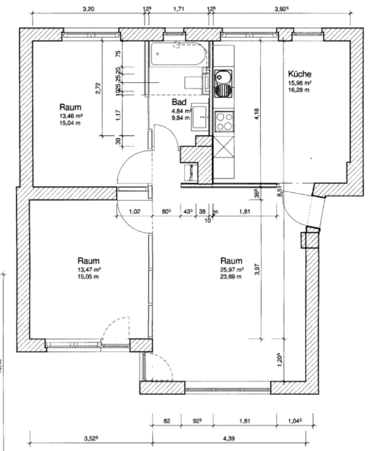 Die Wohnung wurde vor ca. 9 Jahren komplett renoviert. Im Zuge der Renovierung wurde der Grundriss verändert. Die Stellwände könnten auf Wunsch wieder entfernt werden, sodass der Grundriss anders gestaltet werden kann.