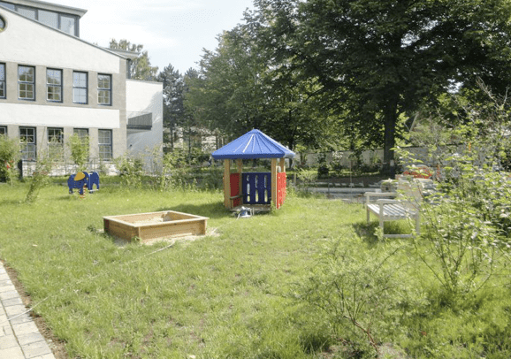 Im Garten befindet sich eine weitere Terrasse, für die die Nutzer dieser Wohnung ein Sondernutzungsrecht haben.Der große Garten mit dem Buddelkasten und kleinen Spielmöglichkeiten eignet sich perfekt für eine kleine Familie.