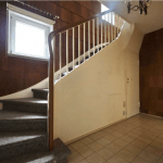 Über eine geschwungene Holztreppe ist das Oberschoss zu erreichen. Hier befinden sich drei Zimmer und ein Badezimmer, ausgestattet mit einer