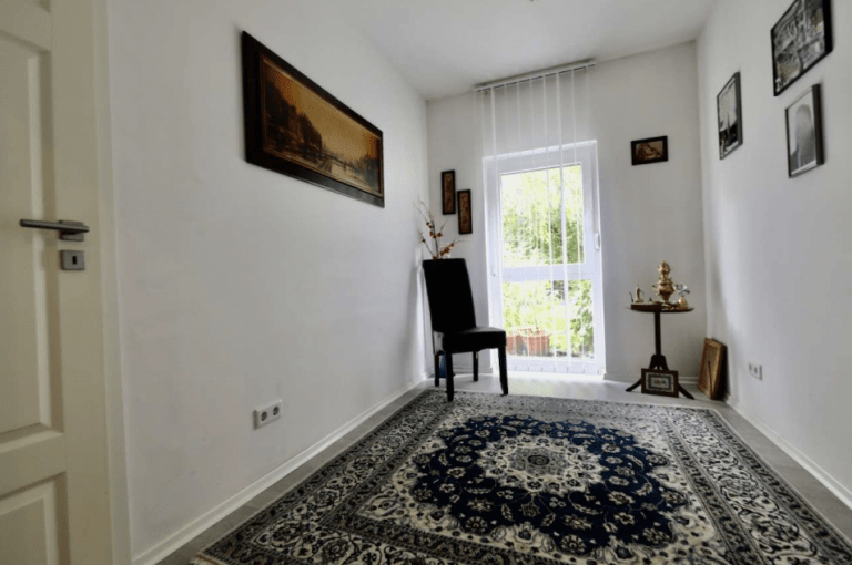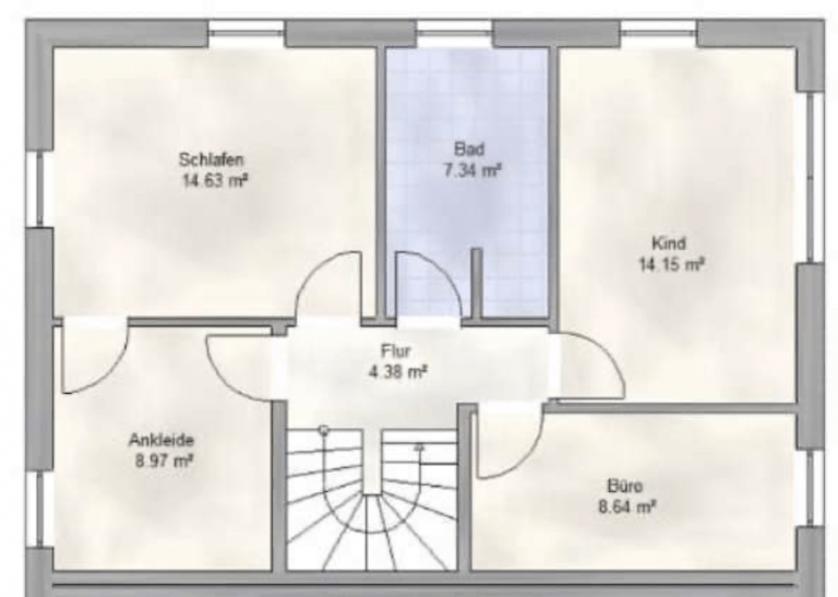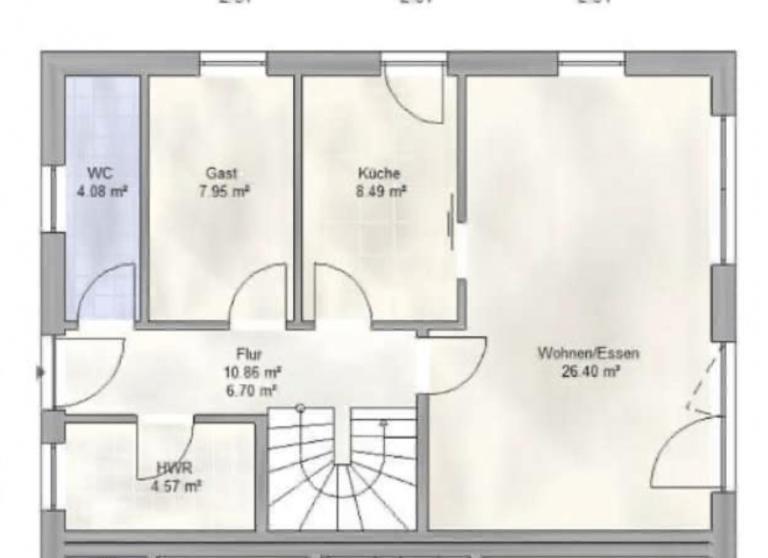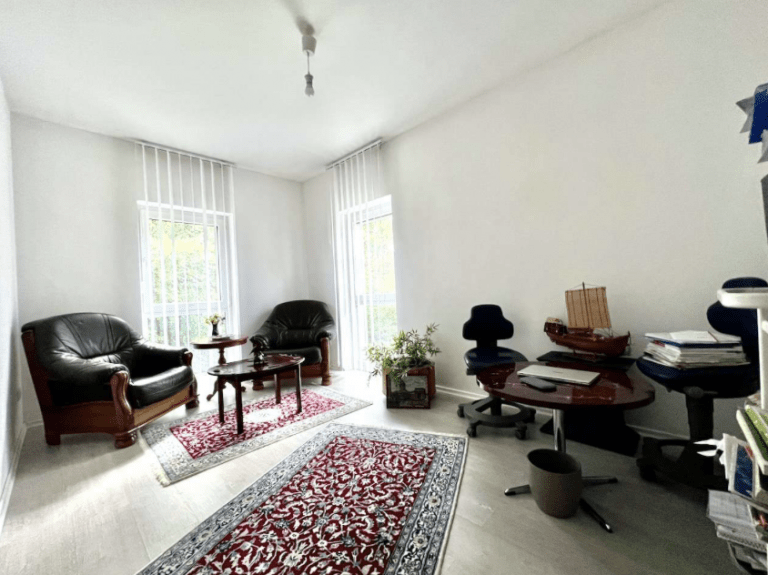 Eine Deckenhöhe von 2,75 m verleiht ein angenehmes Raumgefühl, und die bodentiefen Kunststofffenster lassen viel Helligkeit ins Haus. Die Fenster sind zudem mit Jalousien bestückt.