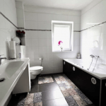 Im Obergeschoss befinden sich vier weitere Zimmer und das Badezimmer, ausgestattet mit einer Dusche sowie einer Badewanne mit Whirlpool-Funktion.